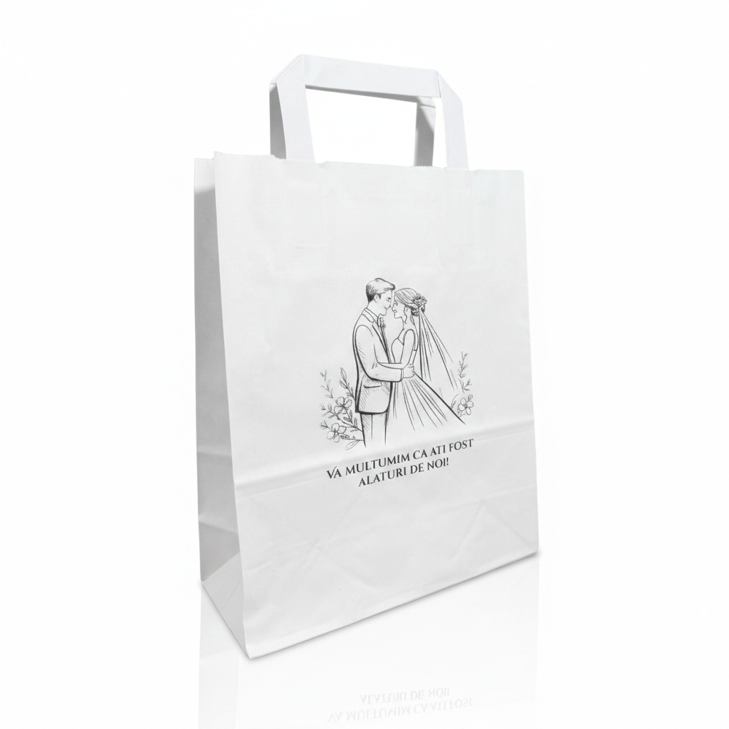 • Sacoşă din hârtie albă 22x28x10 cm cu mâner plat